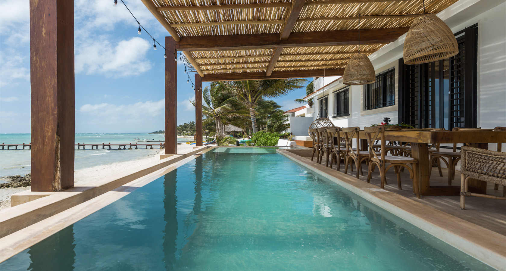 Has a fantastic Chef, daily housekeeping, Kayaks and Paddle Boards & other amenities. It resides on a premier Snorkeling and Diving bay & Cenote, with PADI Dive shops within short beachfront walking distance.